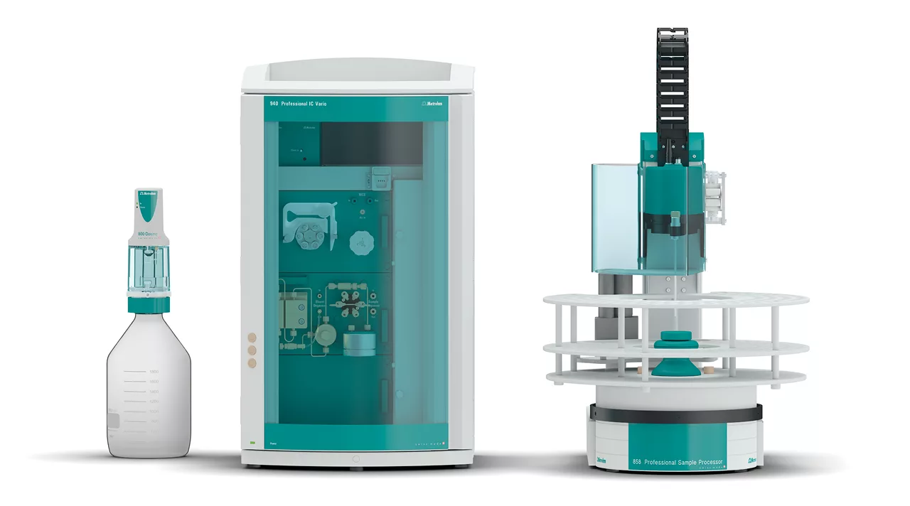 Hệ thống Sắc ký Ion ProfIC Vario 14 Anion với kỹ thuật tiêm mẫu thông minh của Metrohm (MiPuT), ức chế tuần tự và phát hiện độ dẫn cho phép xác định các anion hoặc cation từ những thể tích mẫu rất nhỏ.