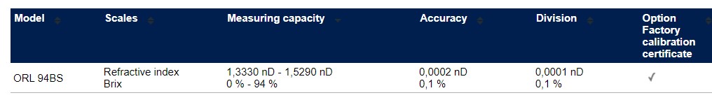 Có thể hiệu chuẩn khúc xạ kế nhanh chóng và thân thiện với người dùng bất kỳ lúc nào bằng cách sử dụng nước cất bán sẵn trên thị trường